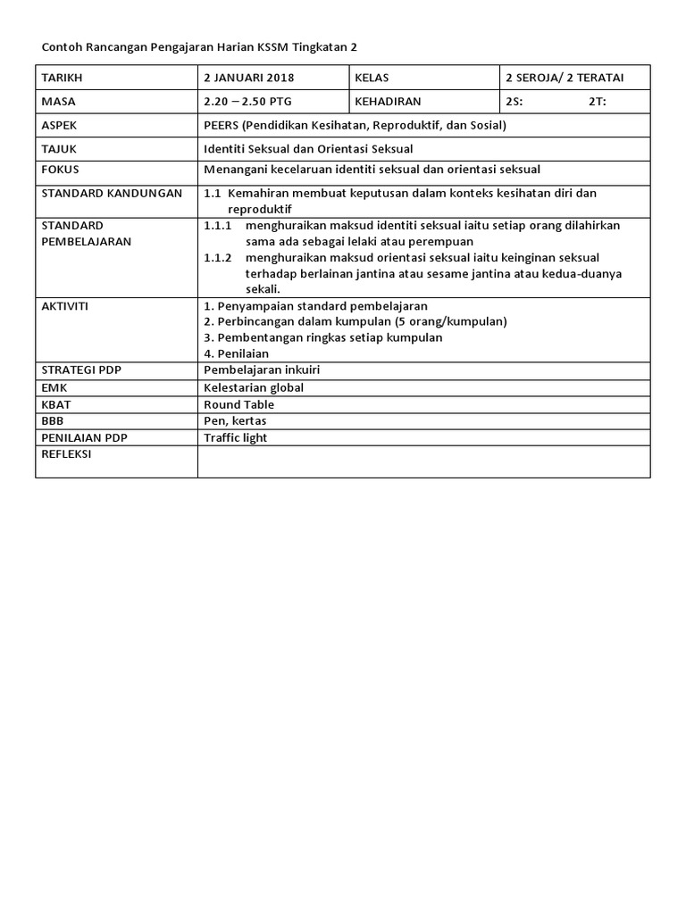 Contoh Rancangan Pengajaran Harian Kssm Tingkatan 2 Ringkas Pdf